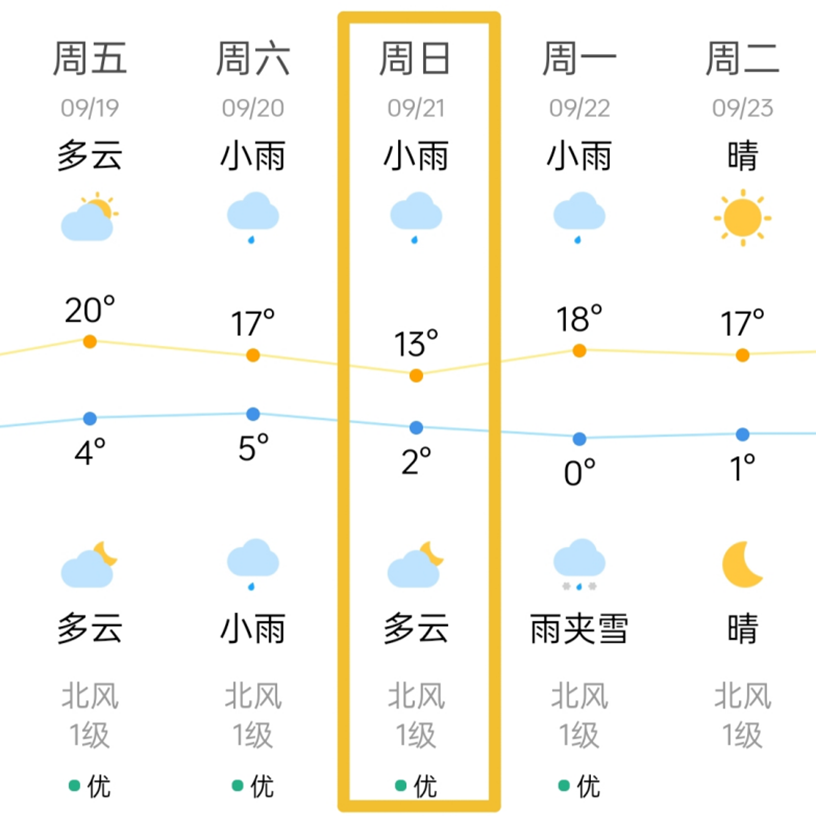 穿衣指南:赛事当天仙米地区将迎来小雨转多云天气,气温 2~13℃,并伴有微风。建议内搭长袖打底,外穿防风外套。