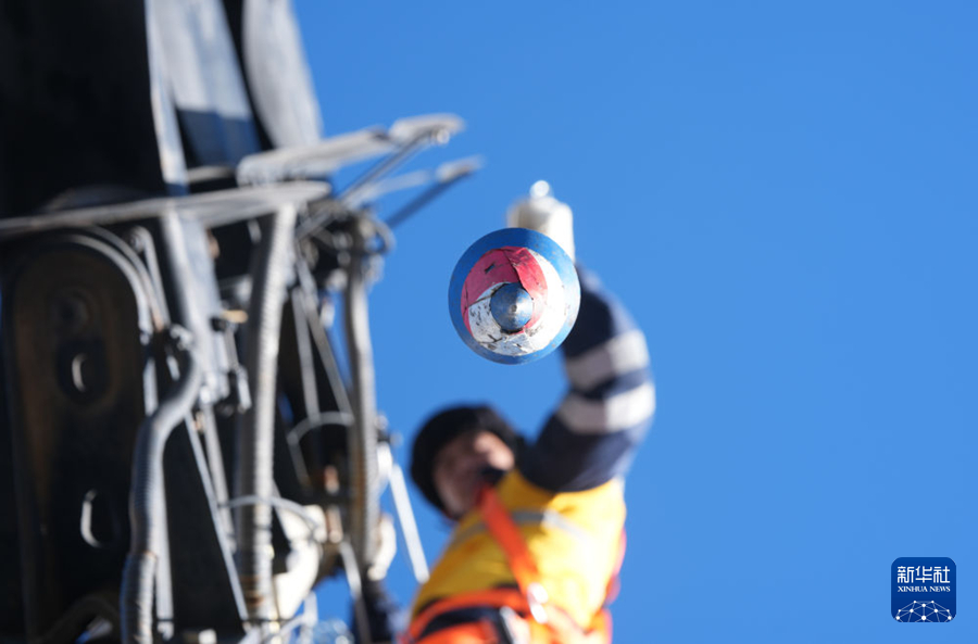 信号工孙伟在哈尔盖信号车间哈尔盖信号工区青海湖站测量信号机的限界。