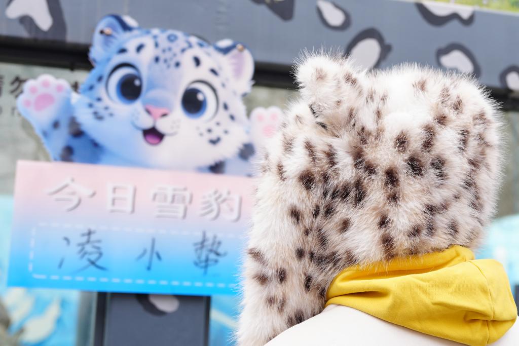 这是2月12日在青海省西宁野生动物园拍摄的雪豹“凌小蜇”宣传牌。